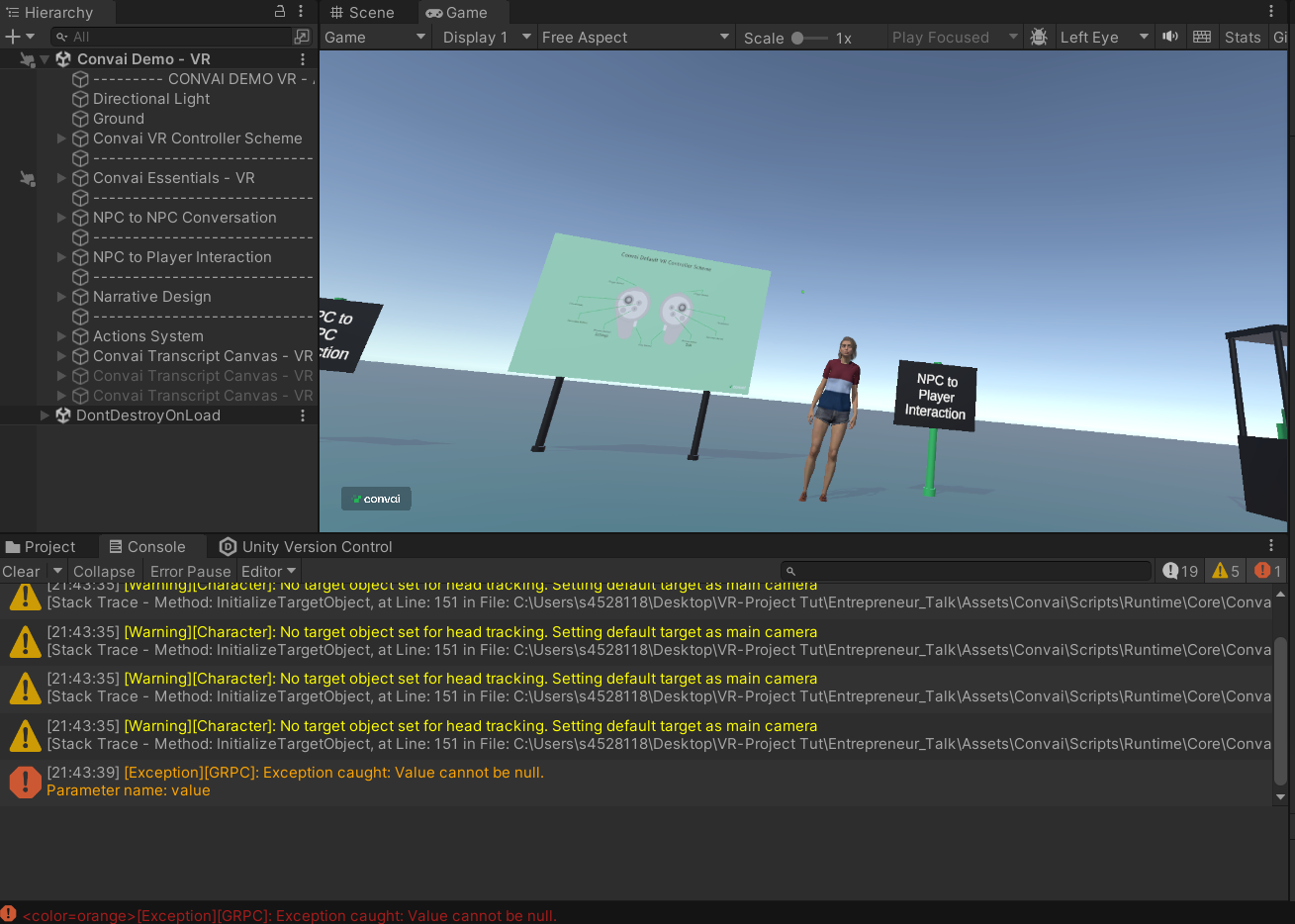 the controllers show up in the scene but doesn’t allow me to move towards npc and interact. It only points